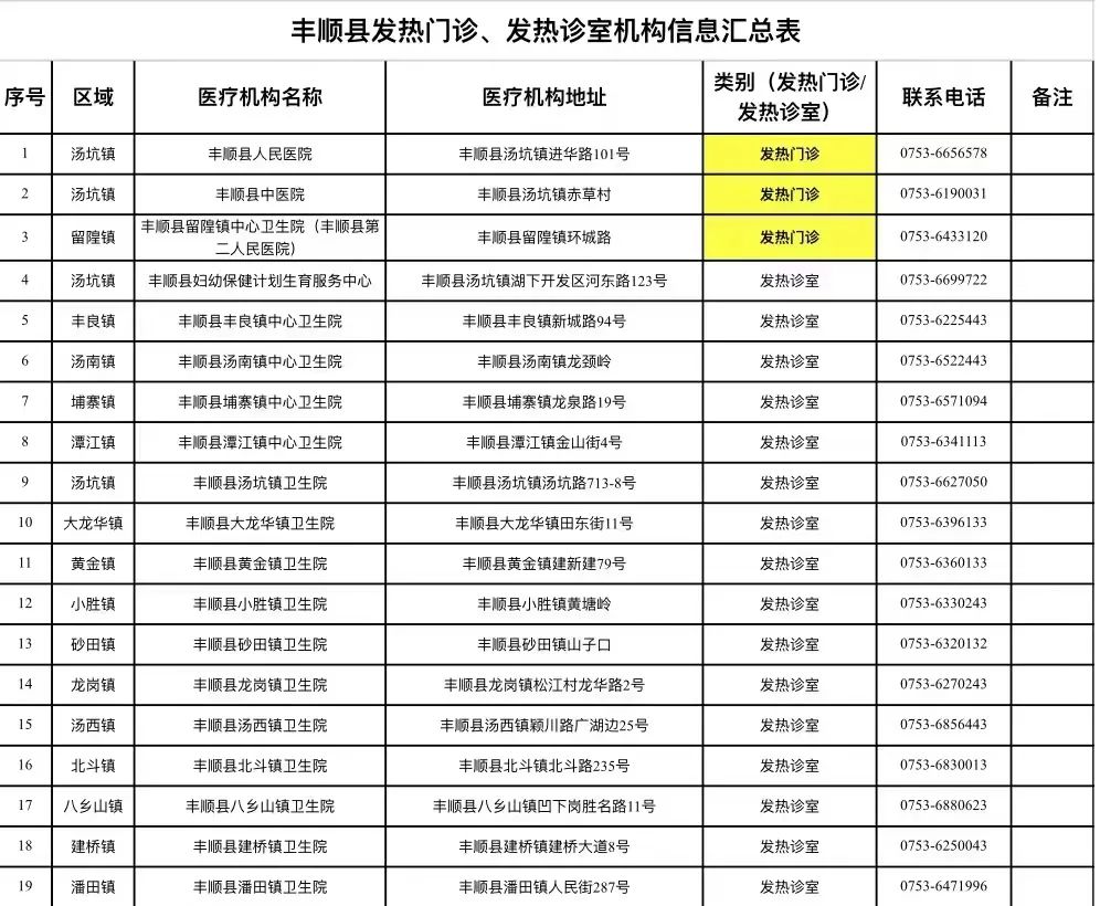 为进一步方便群众就医,现公布丰顺县医疗机构发热门诊更新设置情况: