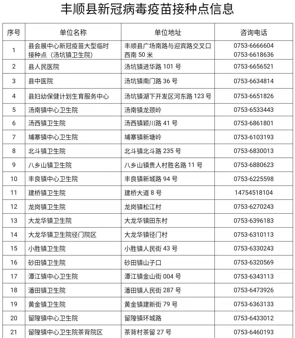 为进一步方便群众进行新冠病毒疫苗接种,现公布丰顺县提供新冠病毒疫苗接种点更新设置情况: