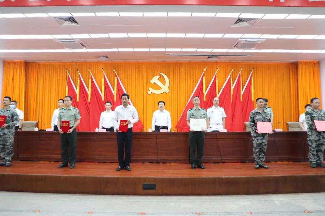 会上,县委常委、县人武部部长罗小平宣布基层武装部政治教导员任职命令,总结2021年度党管武装工作情况,部署2022年工作;县人武部政委许孝忠传达梅州军分区党委六届四次全体(扩大)会议精神;副县长、县公安局局长罗小天宣读表彰通报,与会领导共同为受表彰的单位和个人颁奖。