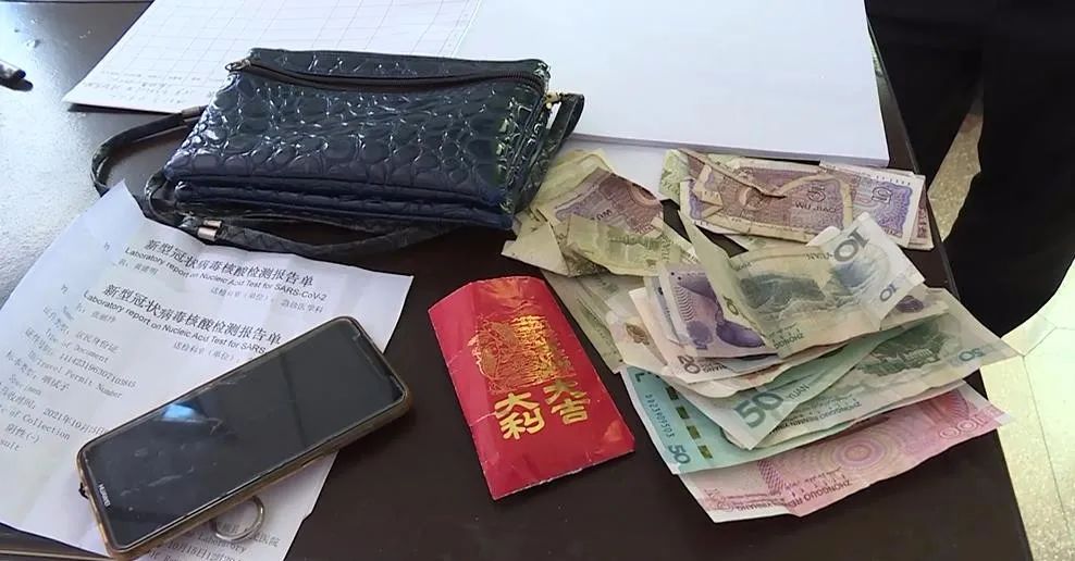 好心市民将钱包交到我台的工作人员手中后,一起打开钱包发现里面有一叠现金、一台黑色手机、及两张新型冠状病毒核酸检测报告单,随后工作人员对现金进行清点,一共有590多元。