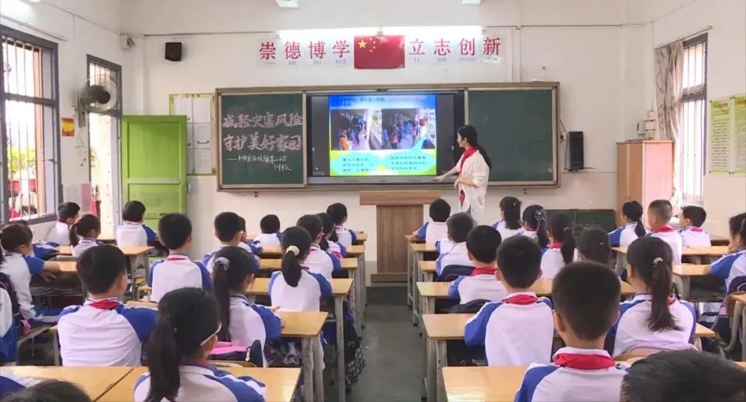 在汤坑镇第二小学防灾减灾主题班会课上,老师为学生普及防灾减灾知识和技能,特别是关于暴风、地震、雷击、火灾、溺水、交通等事故的预防与应对。同学们认真聆听,入脑入心。