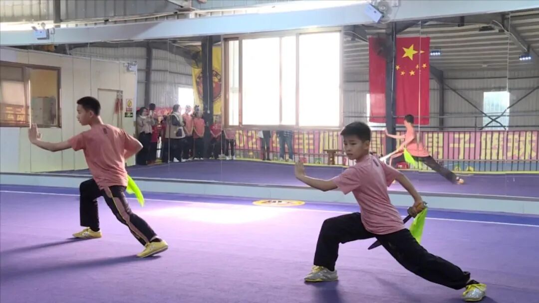 近日,记者在梅州市武术队泰和训练基地内看到,学员们在教练员的指导下,进行春兴门拳法训练,武术学员整齐划一的动作,虎虎生风。