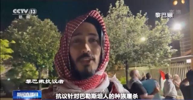 黎巴嫩抗议者:我们在示威游行,抗议针对巴勒斯坦人的种族屠杀。